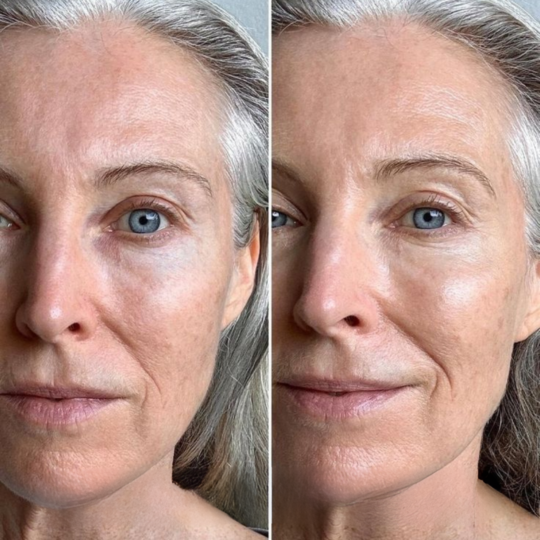 Immagina una pelle che torna subito più distesa, luminosa e compatta, con rughe visibilmente ammorbidite e un colorito più fresco. Un viso che appare più giovane, riposato e vitale, come dopo giorni di relax.